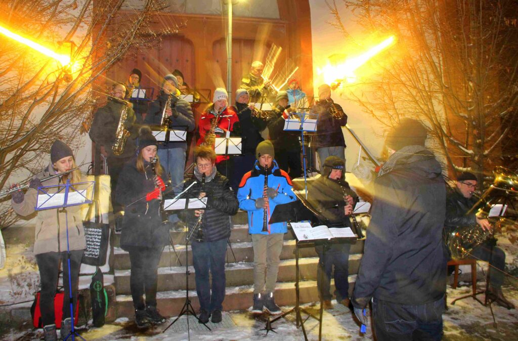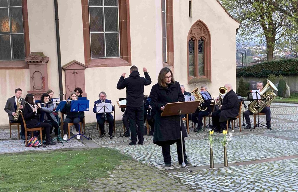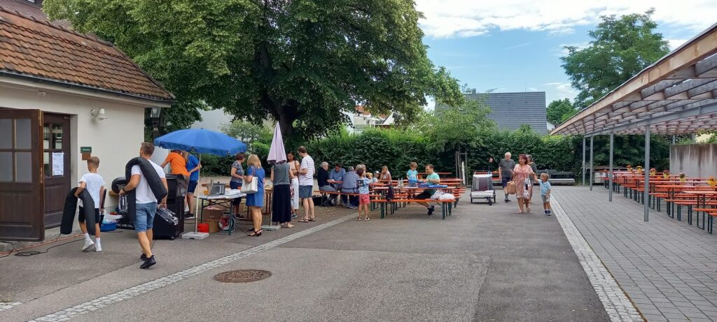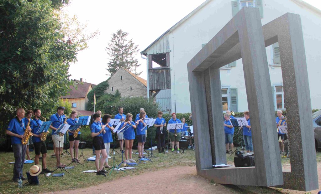 Das erste Konzert nach über 2 Jahren Corona-Lockdown. Bei dem Konzert auf dem Schulhof der Alten Schule stellte die Künstlerin Ilse Sterzl Aquarellbilder aus Ungarn aus, der Heimat unseres Dirigenten