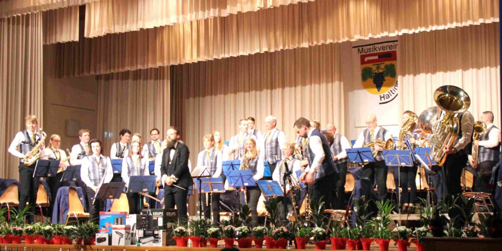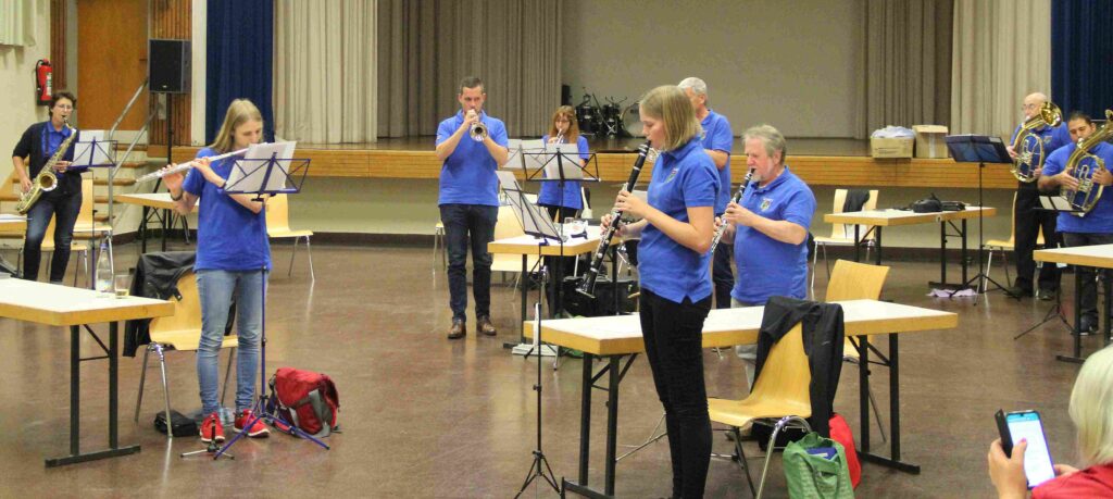 Der erste Auftritt mit dem neuen Dirigenten Adam Jakab, der die musikalische Leitung des MV Haltingen von Aaron Solberg übernommen hat, nachdem Aaron Solberg den Verein aus beruflichen Gründen verlassen