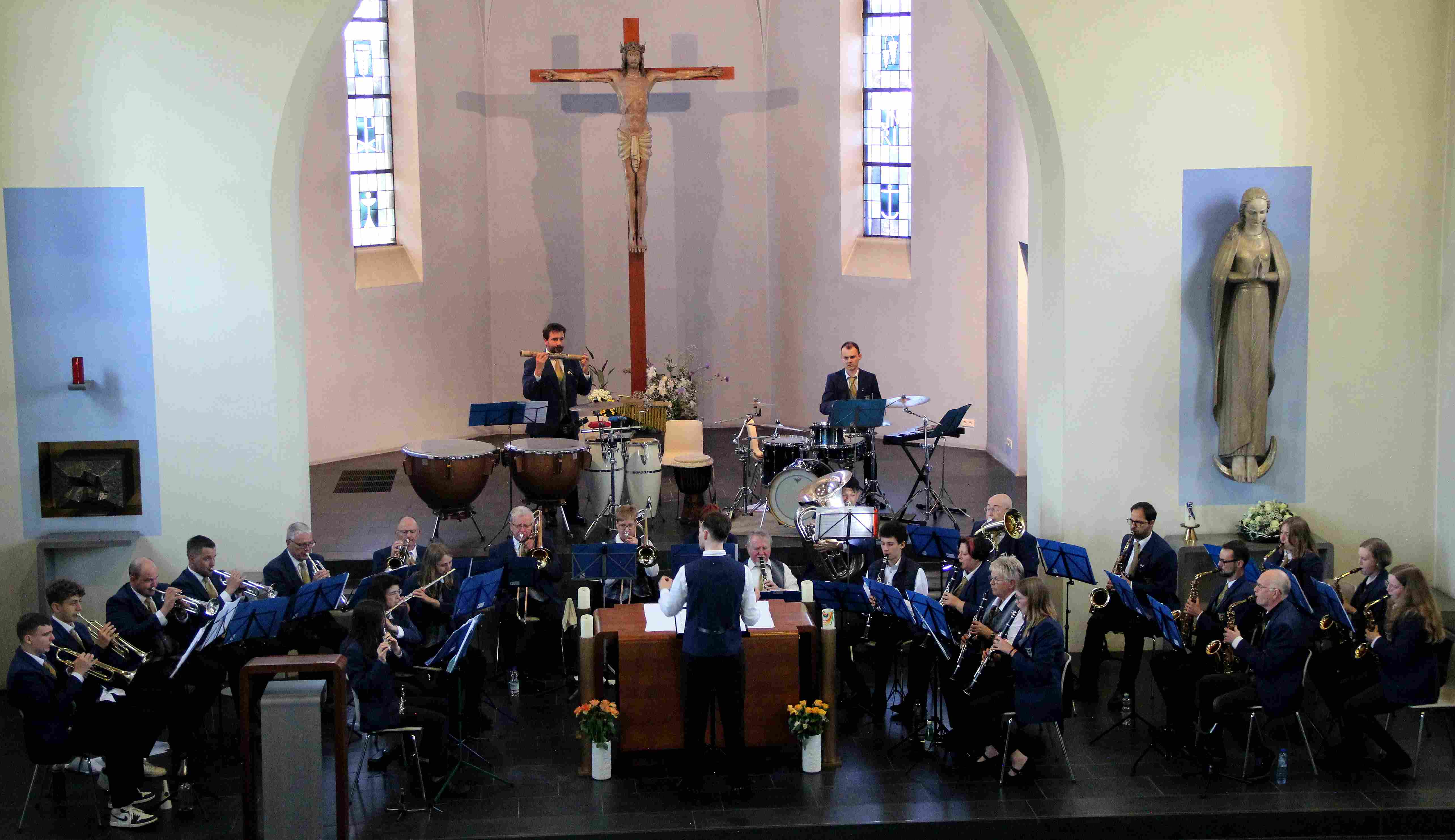 Am späten Sonntagnachmittag begrüßte der Vorsitzende Jürgen Wehrle die zahlreich erschienenen Zuhörer in der katholischen Kirche St. Maria in Haltingen. Neben vielen Freunden des Vereins waren im Publikum auch einige ESC-Fans auszumachen: Immerhin beteiligte sich der Musikverein mit seinem Auftritt am Weiler ESC-Festival.