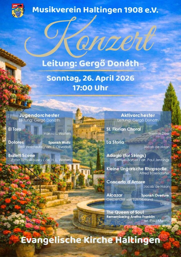 Der Musikverein Haltingen lädt herzlich zu seinem diesjährigen Frühjahrskonzert ein. Gemeinsam mit unserem Dirigenten Gergő Donáth haben wir ein abwechslungsreiches Programm vorbereitet, das musikalische Highlights, emotionale Momente und frische Klangfarben vereint. Die Musikerinnen und Musiker werden ihr Bestes geben, die Bühne mit Energie und Spielfreude zu füllen – und Ihnen ein Konzert zu schenken, das in Erinnerung bleibt. Freuen Sie sich auf mitreißende Musik, besondere Augenblicke und ein Live‑Erlebnis, das begeistert.
