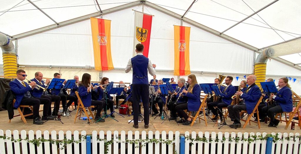 Das Jahr 2023 war ein normales Vereinsjahr. Die Offene Probe wurde erstmals auf dem Schulhof der Alten Schule durchgeführt und zum PROMenadenkonzert umbenannt. Bei der Jahresfeier 2023 wurden Udo Spitz mit der Ehrungsnadel in Gold mit Kranz und Diamant des BDB für „60 Jahre aktives Musizieren“ und Thomas Däublin mit der Großen Golden Ehrennadel für  „50 Jahre aktives Musizieren von Holger Gertz vom Alemannischen Musikverband ausgezeichnet.