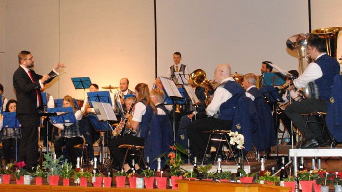 Das Jugendorchester, ebenfalls unter Leitung von Jákáb, wartete gleich zu Beginn mit einer bunten Klangfülle auf. Die Zöglinge zeigten mit Spaß und Eifer was sie gelernt haben und eröffneten mit „Down by the Riverside“ den Abend. Den flotten Disco-Klassiker „Funky Town“ meisterten sie locker und souverän. Einen Hauch von Südamerika wehte mit dem hochprozentigen „Tequila“ durch die Festhalle. Mit der Zugabe „Die Weihnachtsbäckerei“ stimmte das Jugendorchester die Besucher auf die Weihnachtszeit ein. Das Publikum bedankte sich bei den Nachwuchsmusikern mit reichhaltigem Applaus.