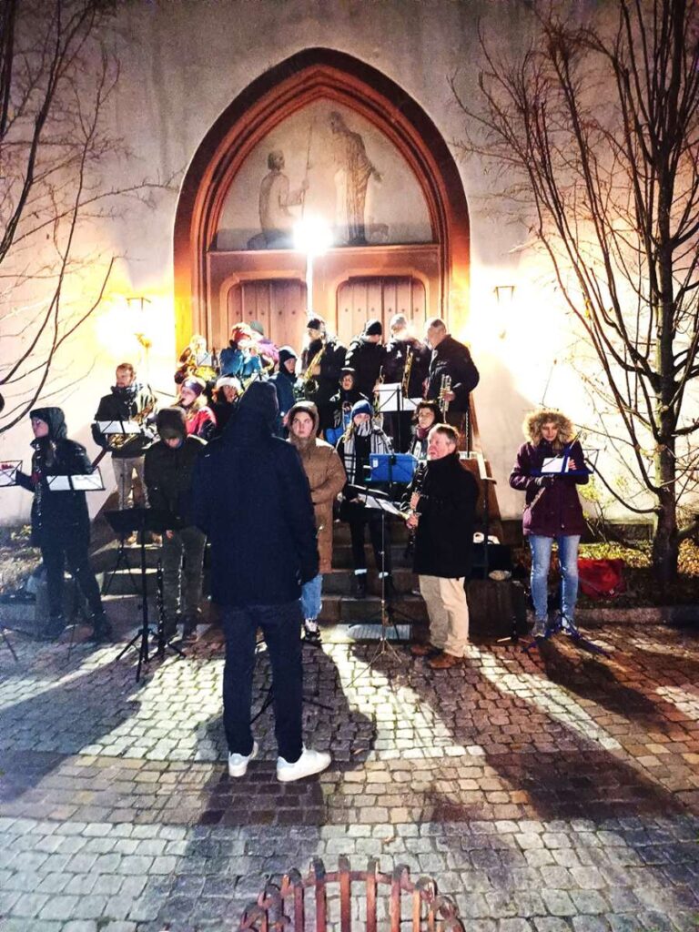 Vor der Kirche in Haltingen wurden bekannte Weihnachtslieder gespielt. Foto:sc